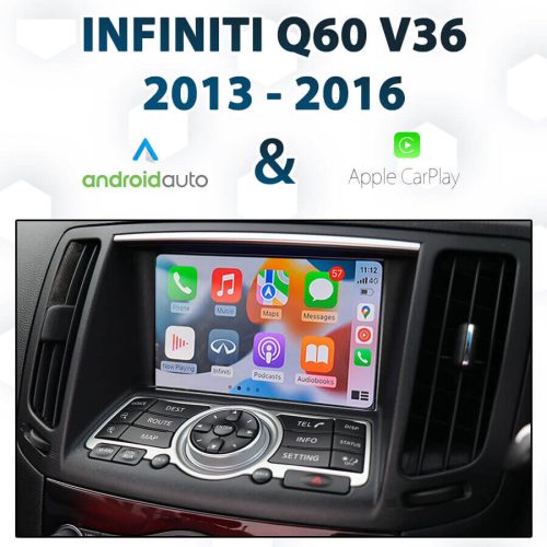 This Android Auto & Apple CarPlay integration allows seamless connectivity with the factory infotainment system of INFINITI Q60 V36 models (2013-2016). It enables modern smartphone functionality without requiring significant modifications.