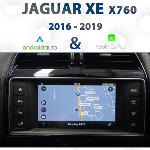This integration enables seamless Apple CarPlay & Android Auto functionality for Jaguar XE X760 models (2015-2018) equipped with the InControl Touch 8″ system, offering modern smartphone connectivity.