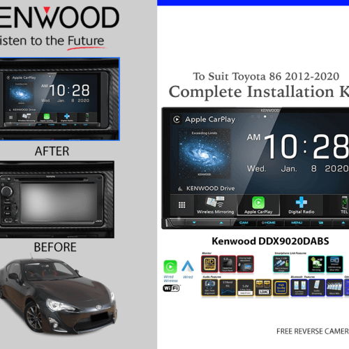 We offer a Complete Car Stereo Upgrade to suit your Toyota 86 2012-2020 Model. We added the Kenwood DDX9020DABS AV Receiver with HD Display to match the Toyota 86 2012-2020.