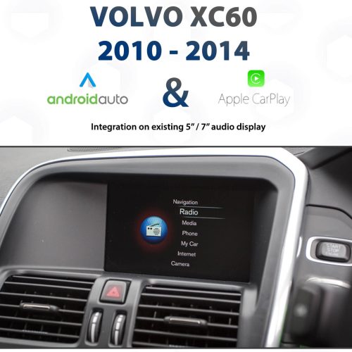 The Android Auto & Apple CarPlay Integration for the Volvo XC60 (2010 to 2014 models) allows you to seamlessly connect your smartphone to the factory infotainment system, enabling access to modern features such as navigation, music, and communication apps. This system integrates with the factory 5.5″ or 7″ infotainment audio display and provides enhanced Bluetooth audio support for superior sound quality, making it a modern and convenient upgrade.